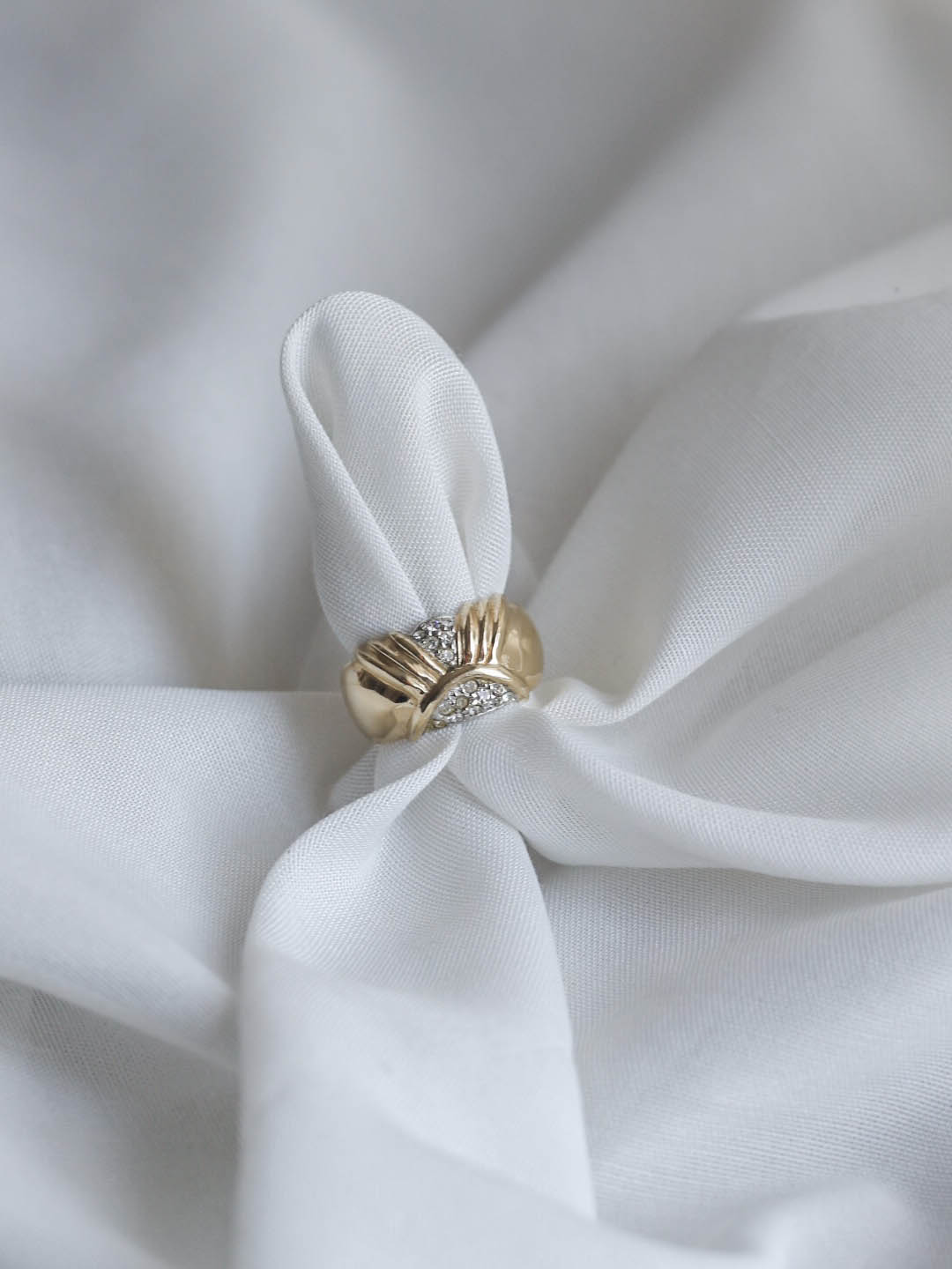 Anillo vintage chapado en oro (3 micras), procedente de una colección de joyería española de los años 80-90. Pieza nueva a estrenar, seleccionada una a una por su diseño y calidad.
