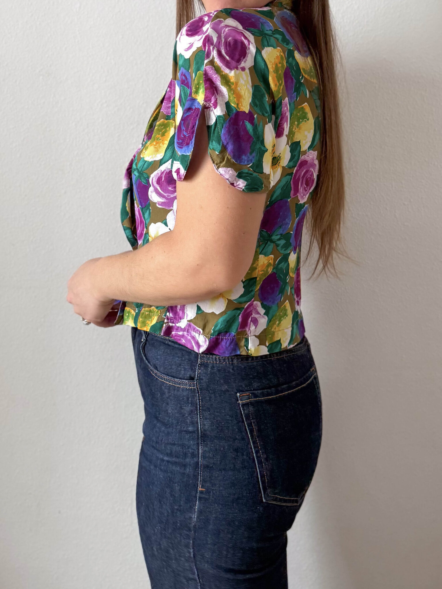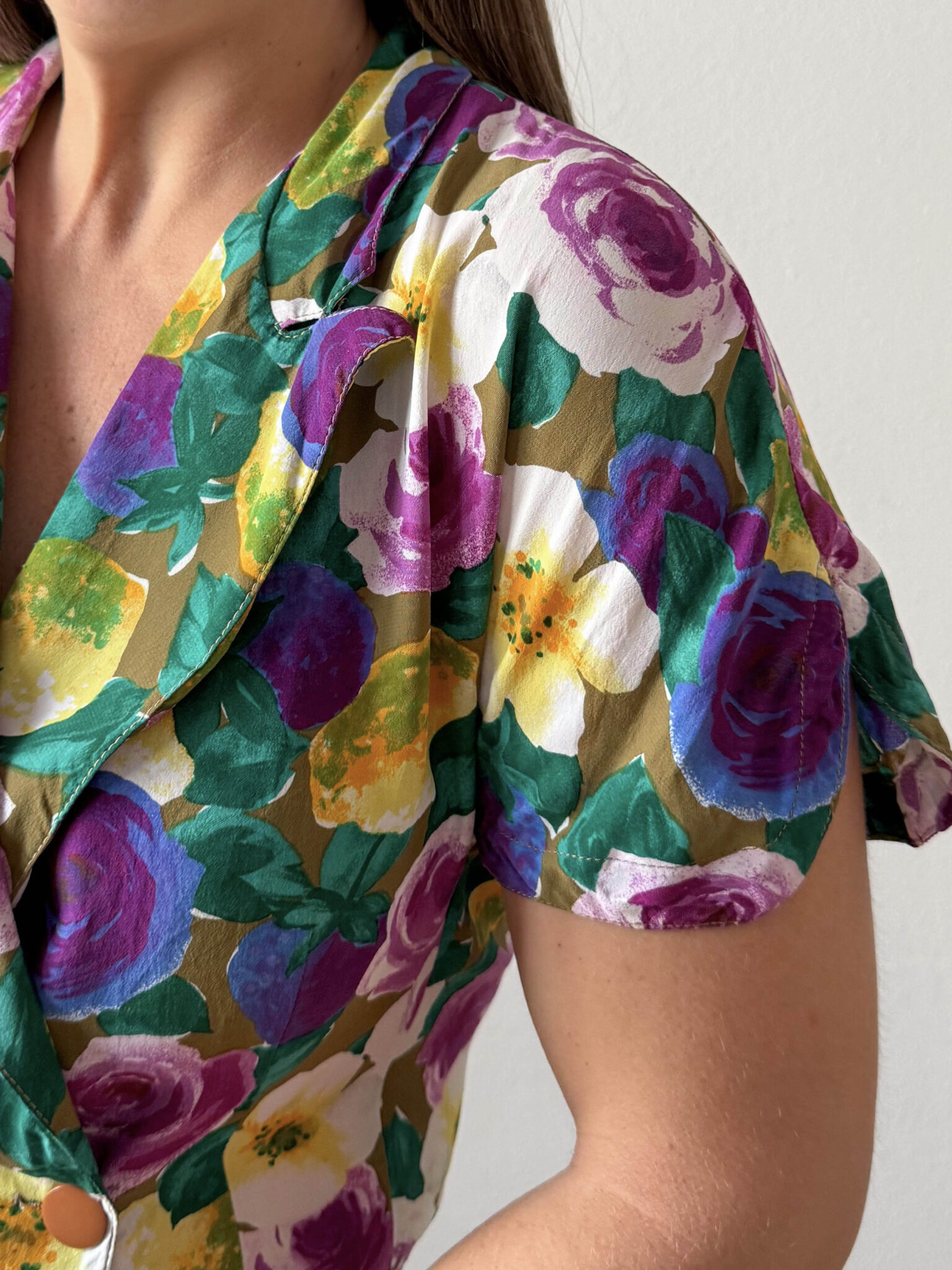 Blusa flores multicolor de corte entallado en cintura, escote cruzado con solapa y apertura en mangas. Tiene un colorido precioso y muy favorecedor.