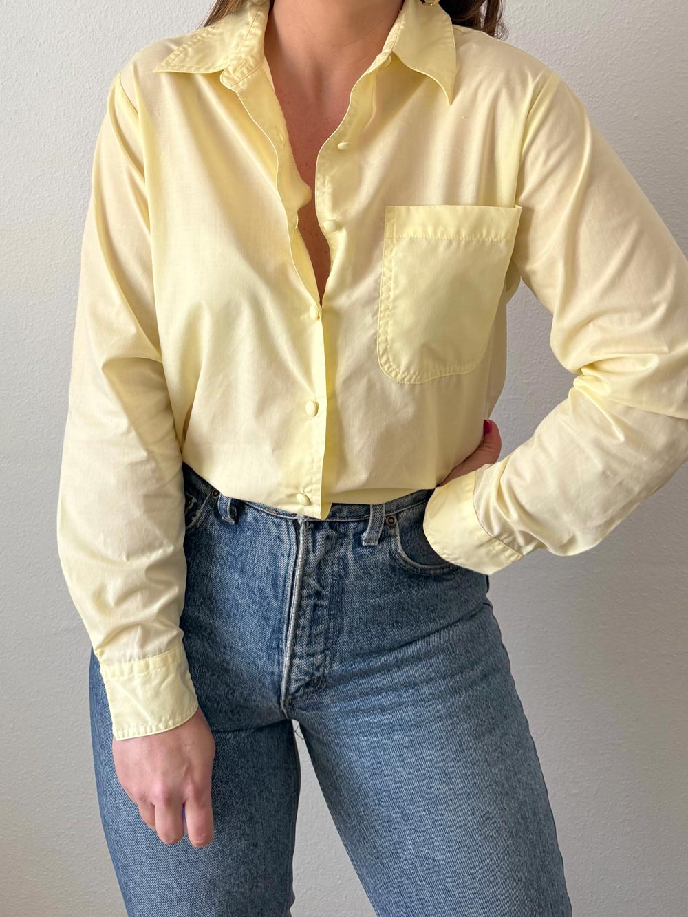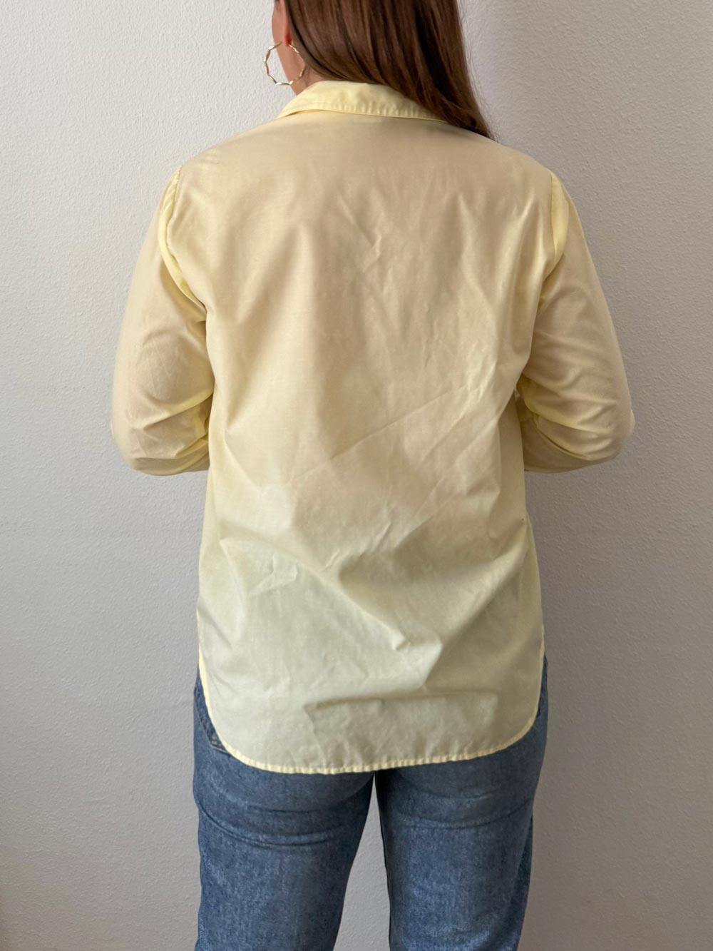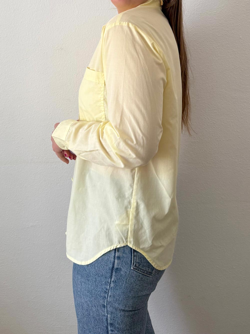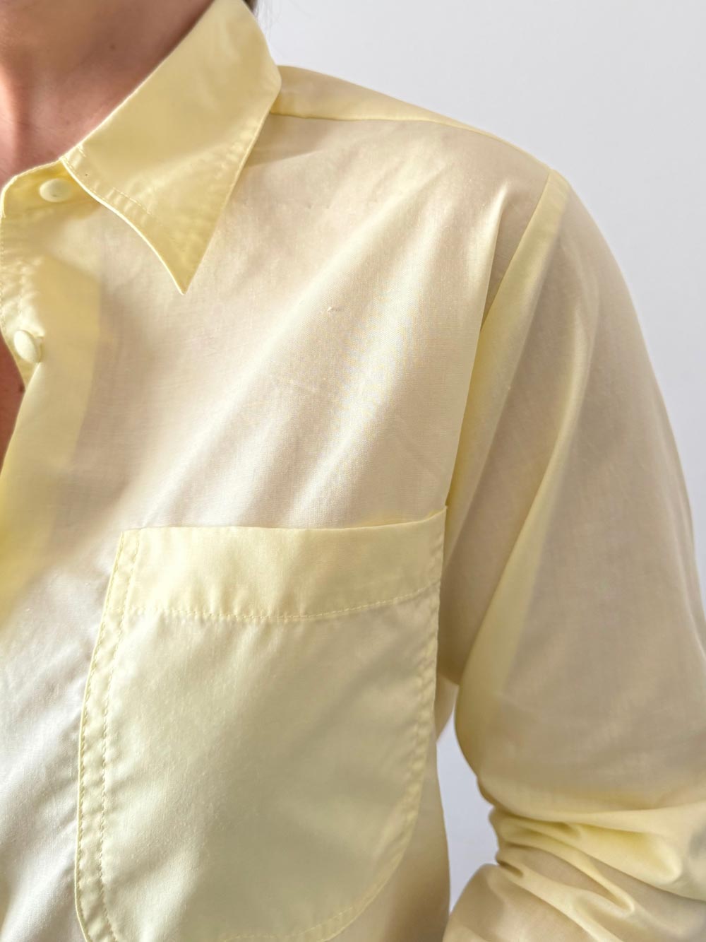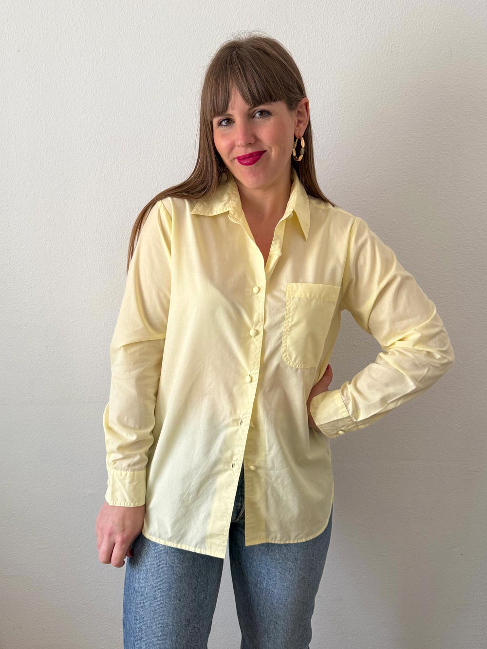 Camisa amarillo pastel vintage. Corte recto con detalle de bolsillo a un lado. Básico atemporal muy cómoda para primavera.