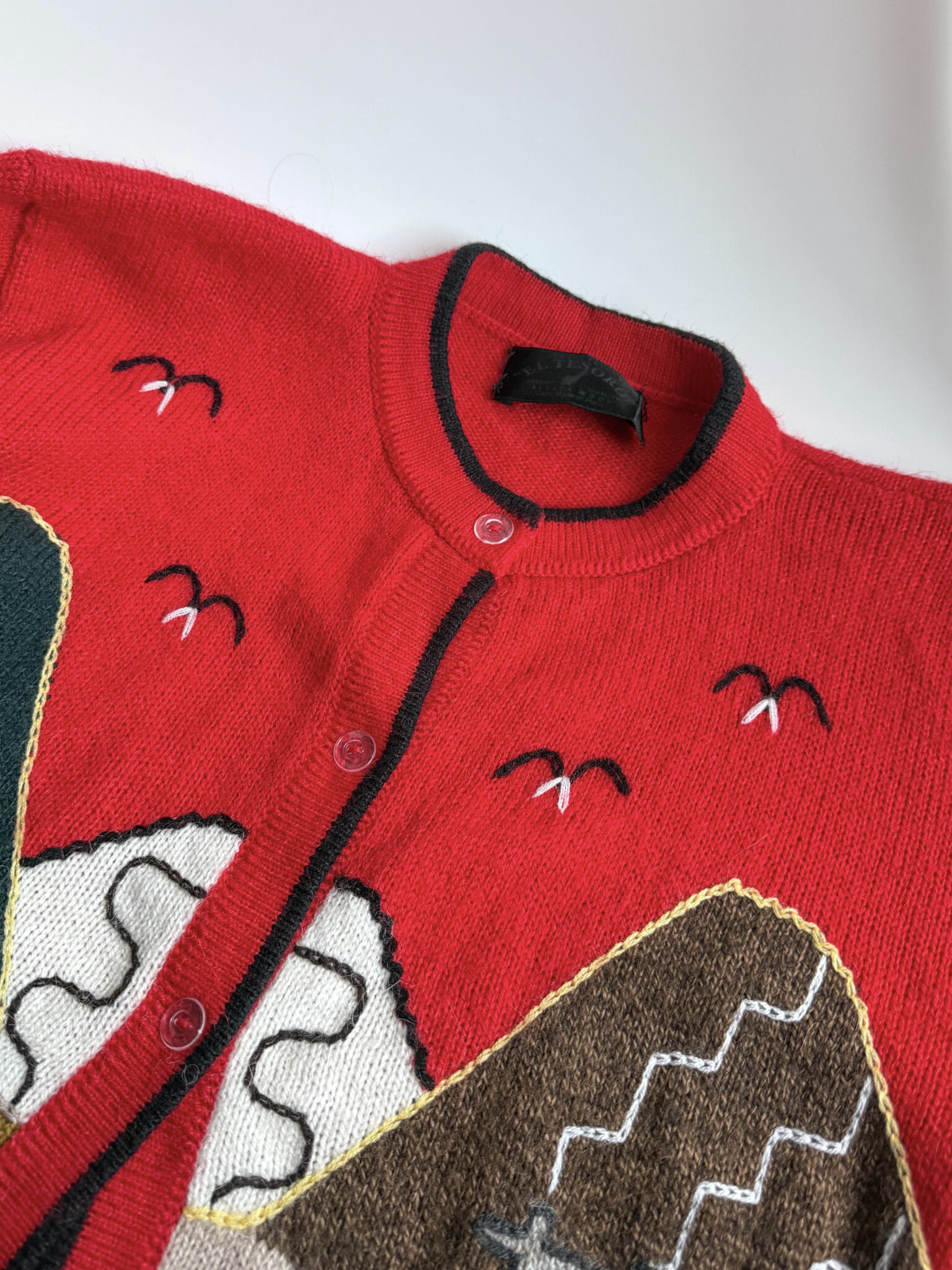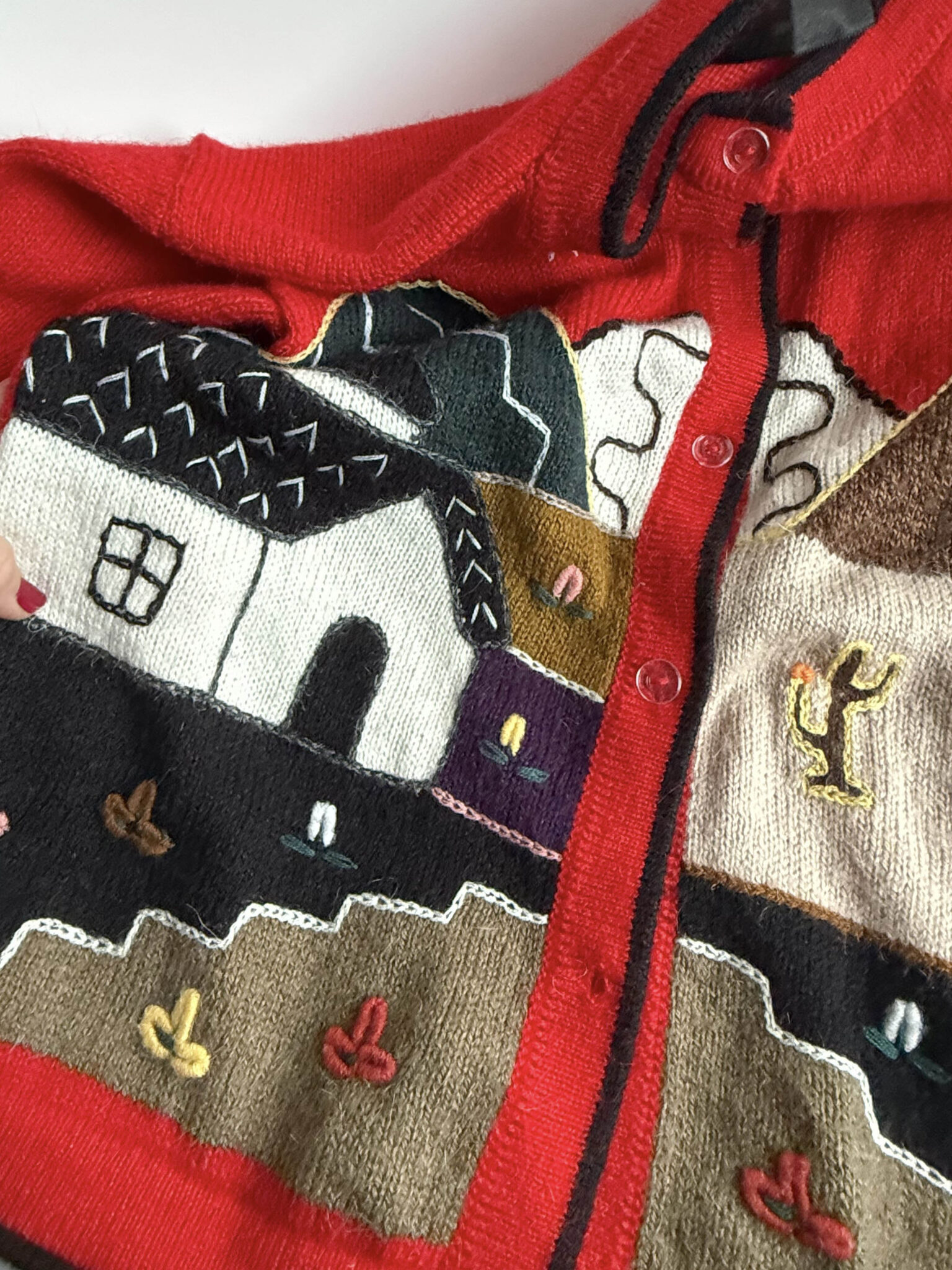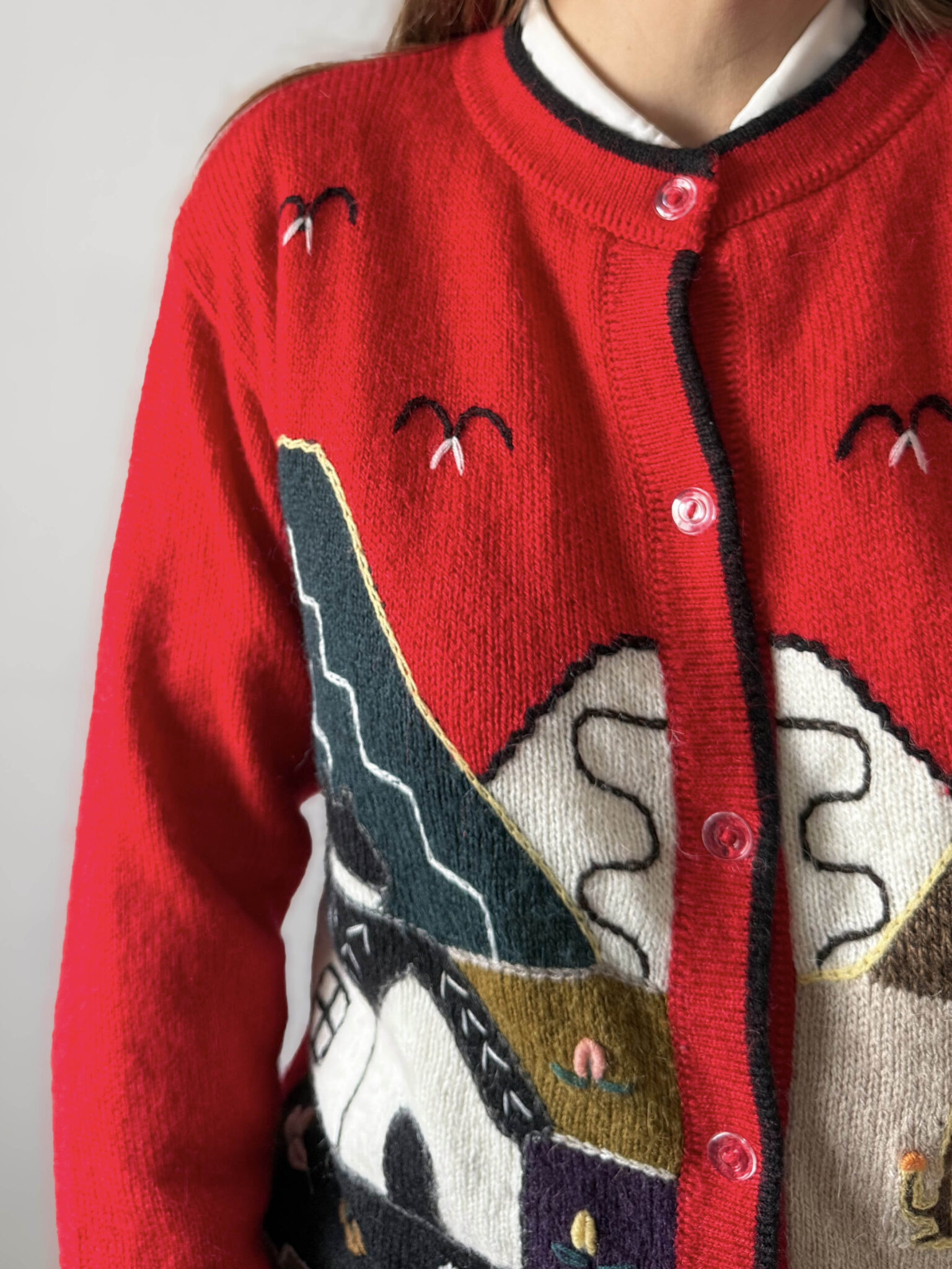Cardigan lana alpaca. Corte recto y ligeramente entallado. Confeccionado en tejido de gran calidad con paisaje bordado a mano.