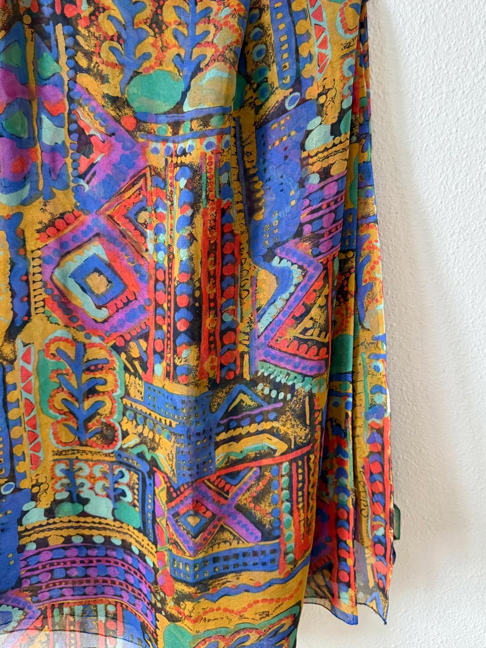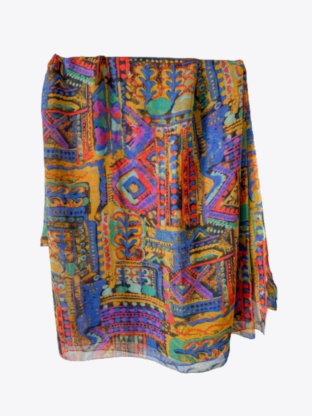 Pañuelo vintage serie 2.1. Tejido semi transparente de gasa con bonito colorido muy favorecedor. Estampado abstracto. Tamaño grande.