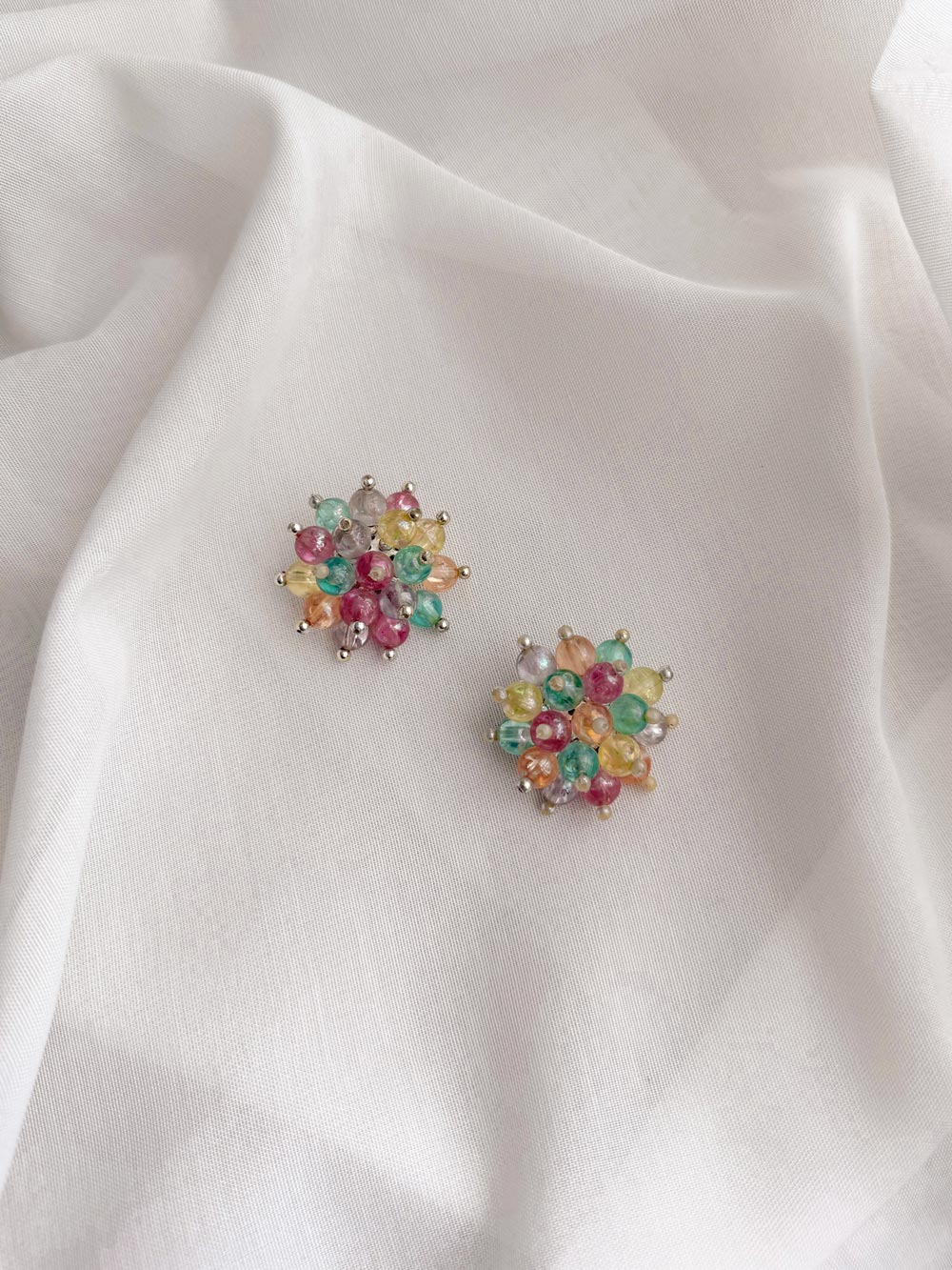 Pendientes cuentas colores años 80. Forma ovalada compuesta por pequeñas cuentas de colores semitransparentes. Muy ligeros de llevar. Cierre de clip